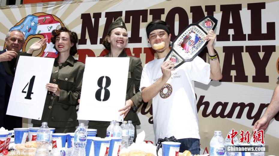 好莱坞举办吃甜甜圈大赛 超级大胃王吃到喷鼻血