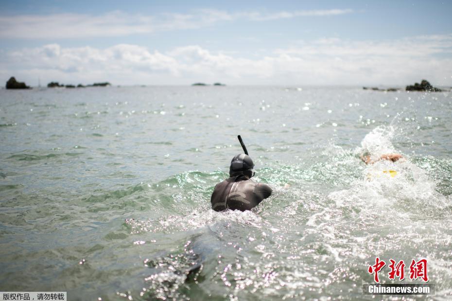 法国男子从日本出发横穿太平洋 开启游泳马拉松