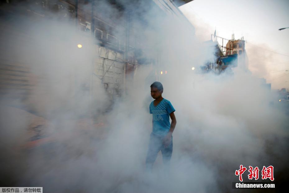 当地时间6月7日,也门公共卫生部门的员工在萨那公共区域喷洒消毒剂。日前,为预防新一轮霍乱疫情爆发,也门卫生部门开启预防机制。