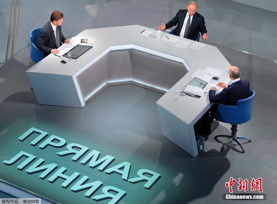 普京与民众“直播连线”节目开始 听问题忙做笔记