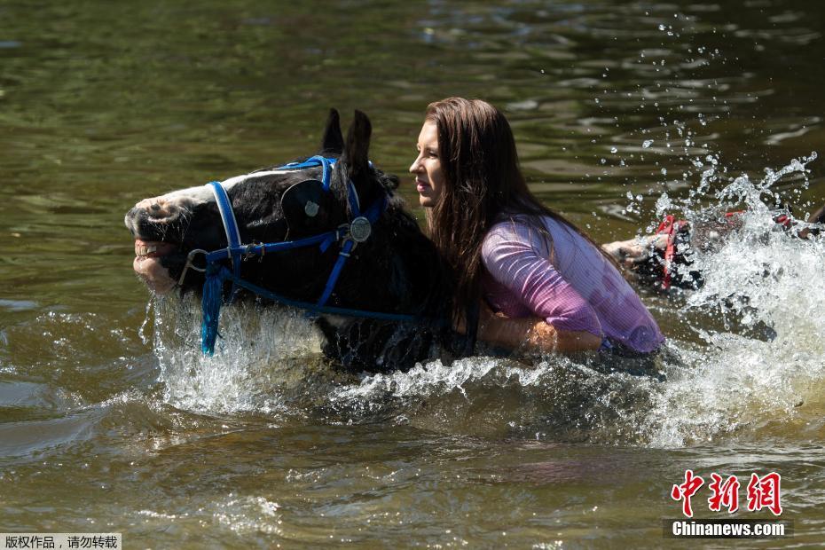 英国年度阿普比马展开幕 游客骑马涉水玩嗨
