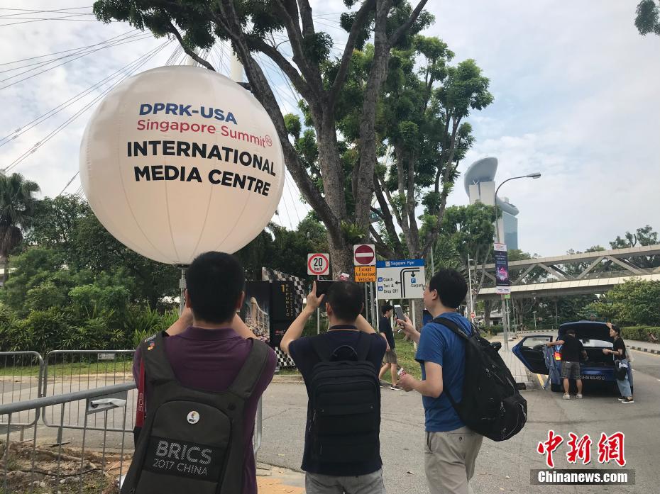 6月10日,新加坡为“特金会”而设在F1维修大楼的国际媒体中心正式开放,多国媒体记者陆续抵达媒体中心等待注册,领取记者证。 中新网记者 孟湘君 摄