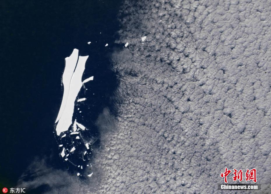 这座冰山是在2000年从南极洲的罗斯冰架上脱离的,当时其面积为4250平方英里(约11000平方公里),这使得它的面积相当于美国康涅狄格州的面积。从南极罗斯冰架脱离18年后,冰山B-15的面积已经大幅缩小,并分裂成多个小块,其中大部分已经融化。 图片来源:东方IC 版权作品 请勿转载