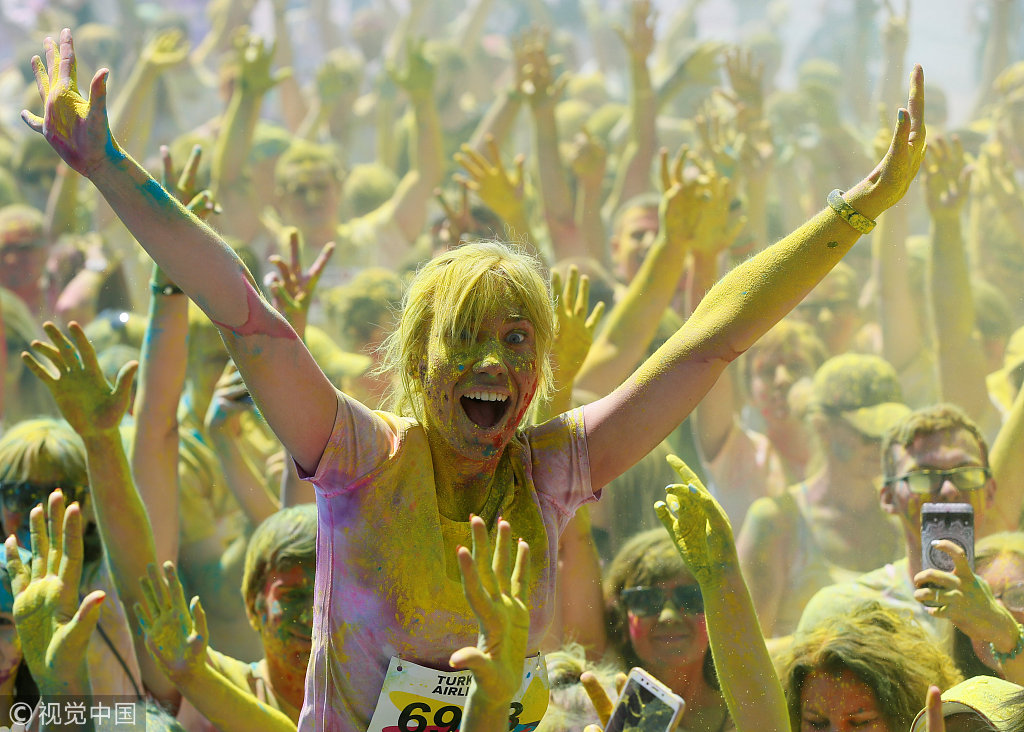 当地时间2018年6月10日,乌克兰基辅,当地举行彩色跑,民众掀起彩色狂欢。