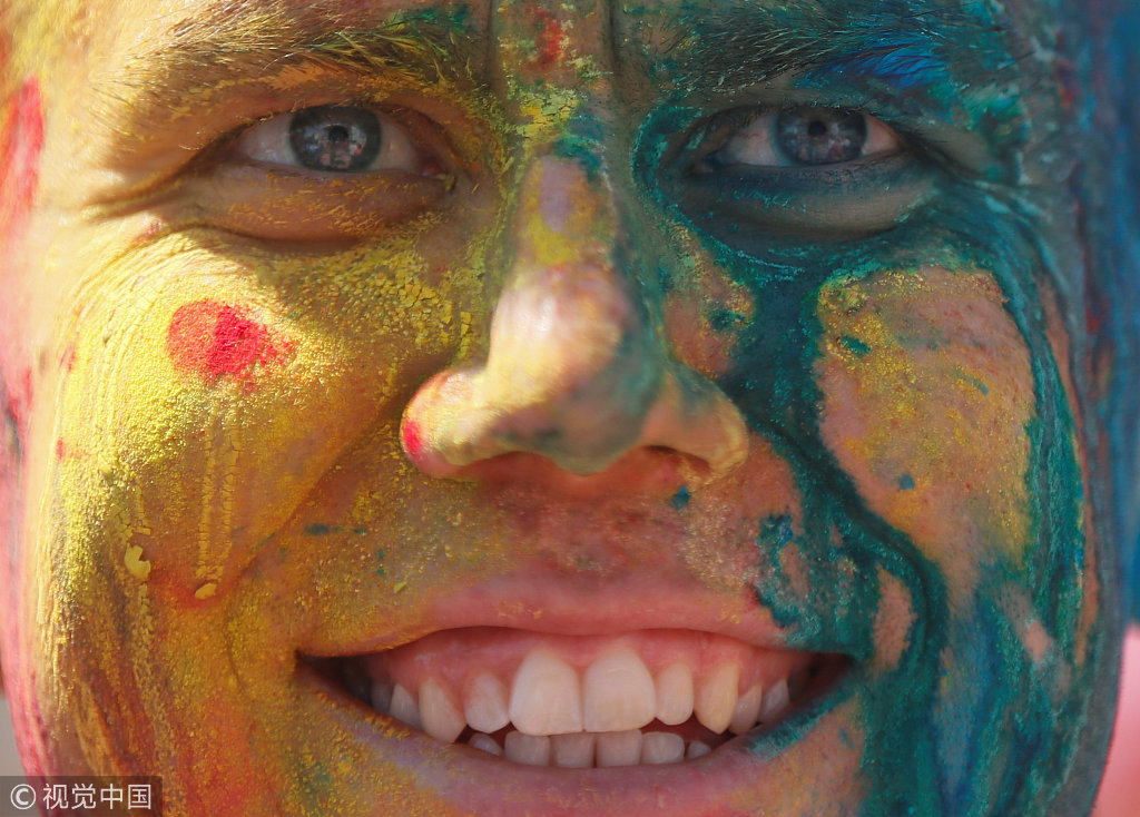 当地时间2018年6月10日,乌克兰基辅,当地举行彩色跑,民众掀起彩色狂欢。