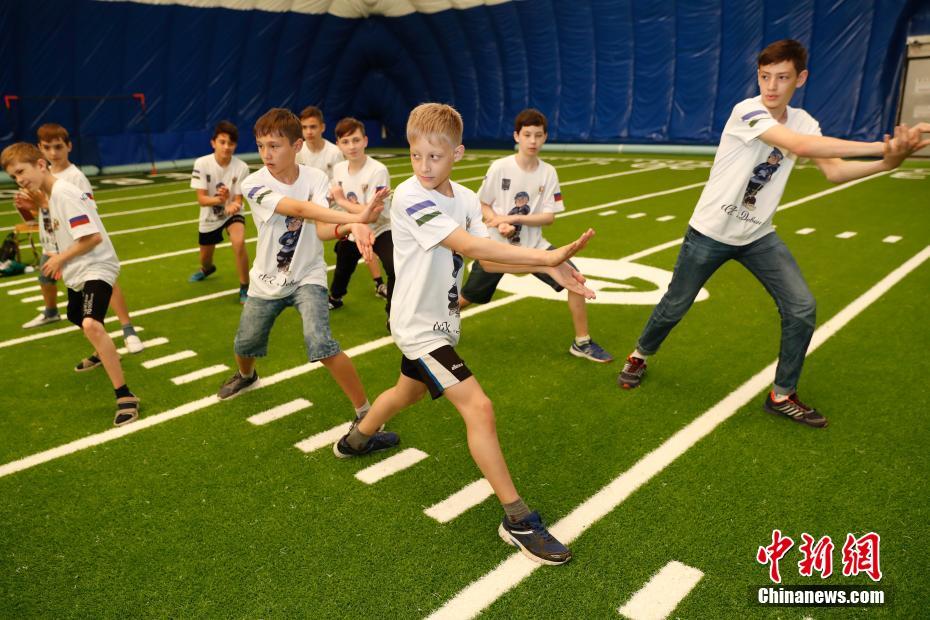 6月11日,俄罗斯青少年冰球队员来到北京市私立汇佳学校,与该校学生展开了一场关于冰球、教育和文化的交流。图为俄罗斯青少年冰球队员学习中国武术。中新社记者 刘关关 摄