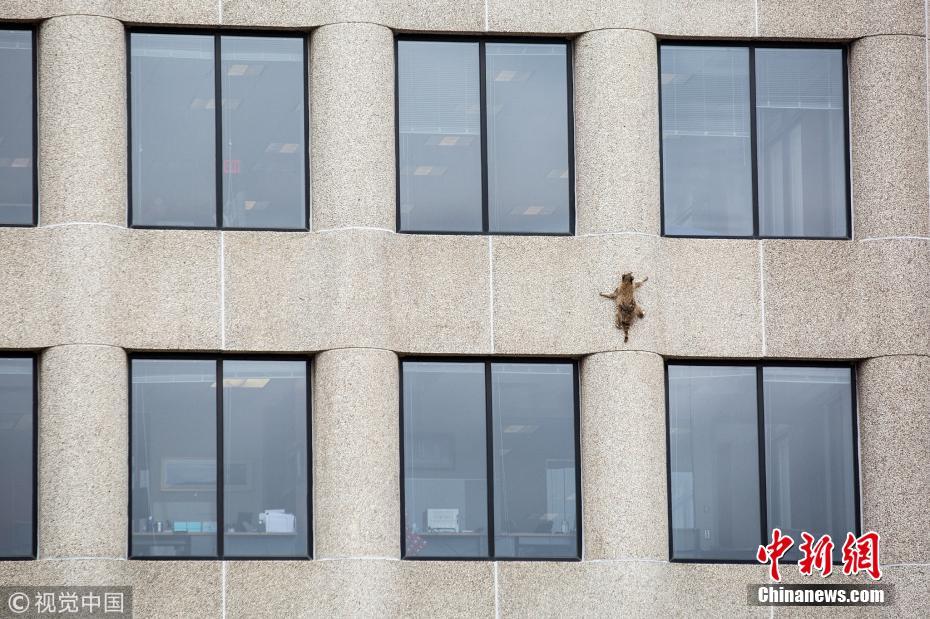 美国一只小浣熊成“网红” 勇攀20层高楼引围观