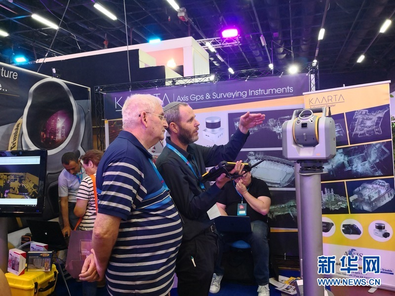 以色列家居建材节展会上,用于大型建筑的三维结构扫描仪。新华网记者陈文仙 摄