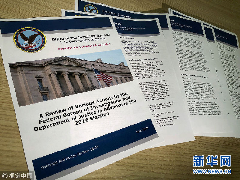 当地时间2018年6月14日,美国华盛顿,美国司法部监察长迈克尔·霍洛维茨就希拉里·克林顿“邮件门”所作调查报告在当天公布。(图片来源:视觉中国)