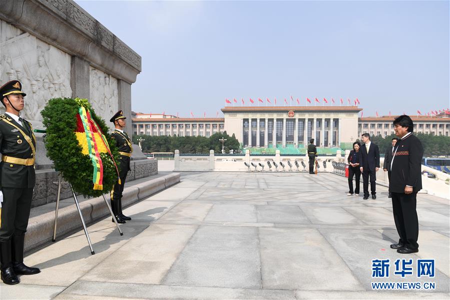 玻利维亚总统莫拉莱斯向人民英雄纪念碑敬献花圈