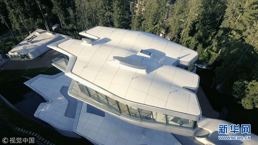 俄罗斯巴尔维卡,已故的建筑大师哈迪德(Zaha Hadid)为俄罗斯亿万富翁设计的的房子历经十年后终于完工。这栋房子外形看起来好像一艘宇宙飞船,总价值9700万英镑(约合人民币8.4亿元),是为房地产开发商Vladislav Doronin设计的,哈迪德称他为“俄罗斯詹姆斯·邦德”。Doronin先生在巴尔维卡郊区森林买了块地建造这栋豪宅,而这里也被称作是“莫斯科比弗利山庄”。这栋豪宅是哈迪德设计的唯一一座私人住宅,一共四层,休闲娱乐生活起居应有尽有,酒窖,3D影院,夜总会,美发沙龙,日式庭园,按摩室等一应俱全,甚至还有一道瀑布。(图片来源:视觉中国)