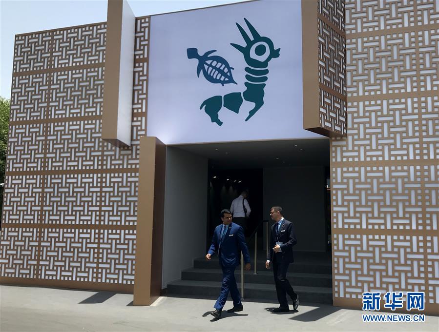 6月27日,在巴林首都麦纳麦,两名男子走出会场。 新华社记者王波摄