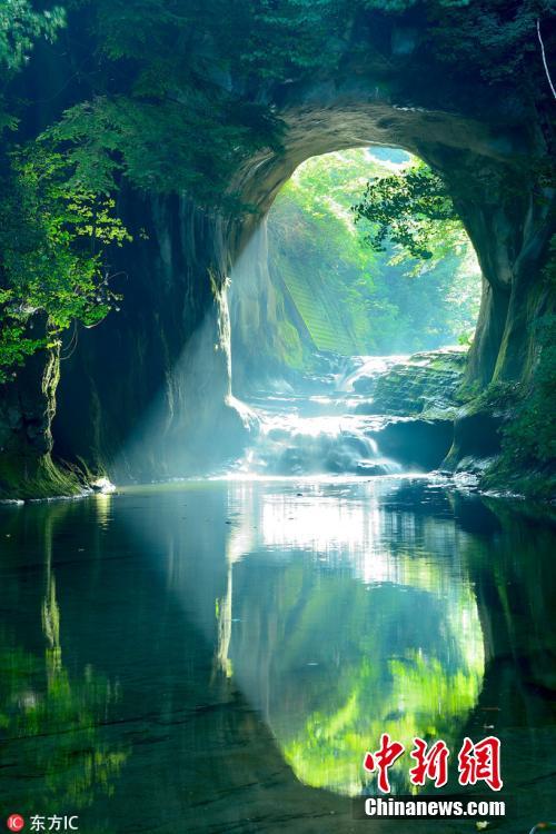 2018年4月28日报道(具体拍摄时间不详),日本千叶县有个神奇的洞穴,它会巧借光影玩浪漫,每年为人们奉上两次惊艳的表演。这个洞穴名为Kameiwa,平日里,它看上去和一般洞穴无异,是个再普通不过的景点,但是每当太阳到某个特定位置,阳光能刚好穿过洞穴时,奇迹便发生了,倾泻的阳光穿过洞穴,光影构成了半个桃心的形状,与水中的倒影契合,组成了一个完美的爱心形状,十分惊艳。图片来源:东方IC 版权作品 请勿转载
