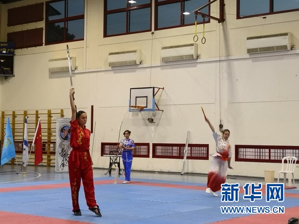 在首届“大使杯”以色列武术锦标赛现场,武术爱好者在表演。新华网记者杜震 摄