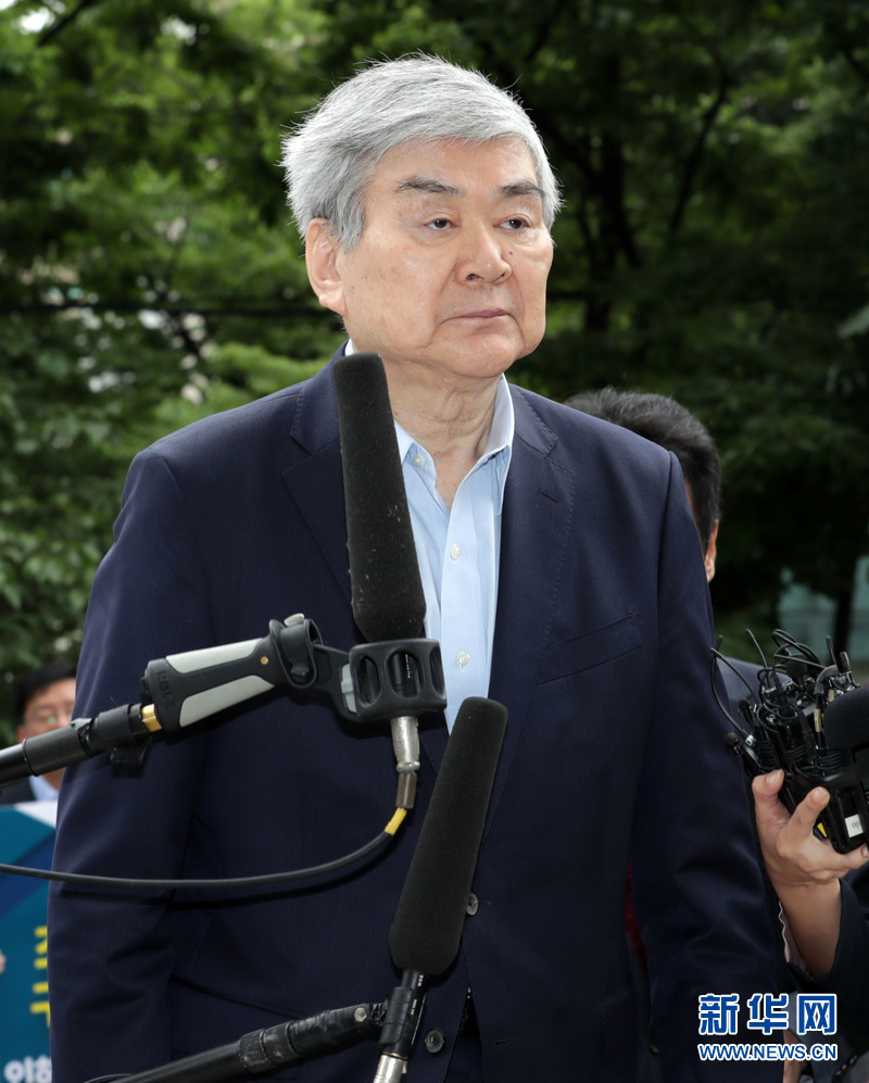 2018年7月5日,韩国韩进集团兼大韩航空公司会长赵亮镐在韩国首尔出席法庭听证会。法庭将就是否对赵亮镐签发逮捕令作出决定。新华网发(李相浩 摄)