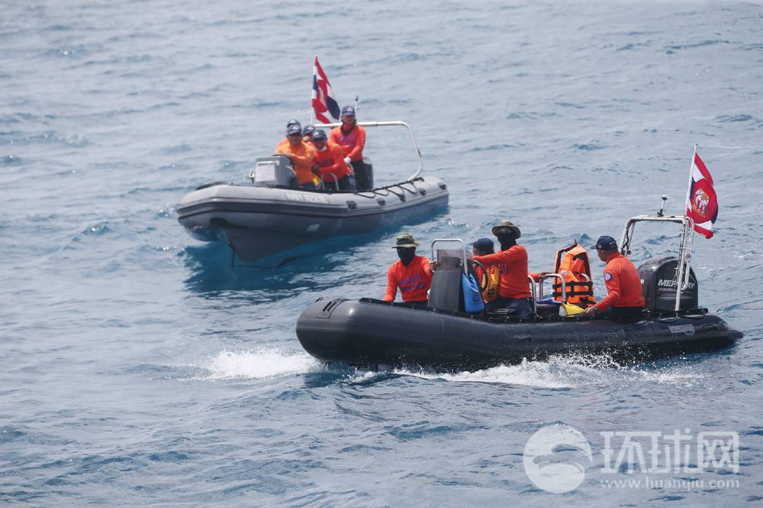 8日,由中泰双方执行的联合搜救仍在继续。在事发海域,泰方派出两艘军舰、一艘潜船和多艘快艇,进行搜索和潜水保障。(摄影/崔萌)