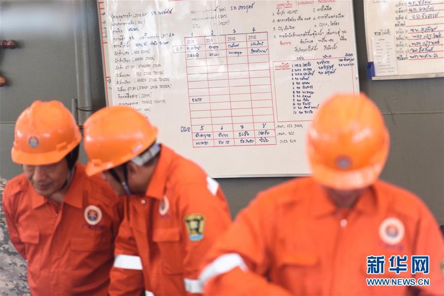 7月8日,在泰国普吉,中国交通运输部广州打捞局救援队成员参与救援。