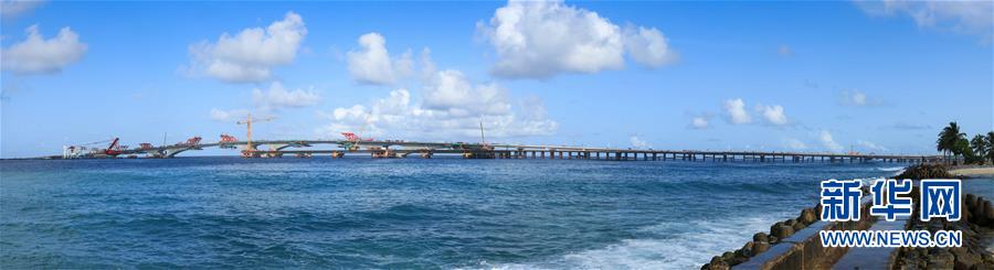 这是7月9日拍摄的位于马尔代夫的中马友谊大桥全景(拼接照片)。随着中国在马尔代夫援建的中马友谊大桥主桥20号墩至21号墩之间的钢箱梁9日成功合龙,大桥至此全线贯通,建设工作取得关键性进展。新华社发(杜才良摄)