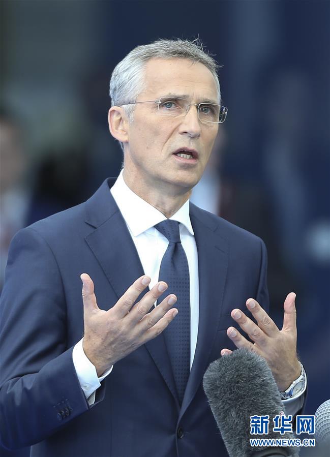 7月11日,在比利时布鲁塞尔北约总部,北约秘书长斯托尔滕贝格对媒体讲话。新华社记者叶平凡 摄