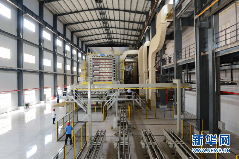 图为7月13日在老挝沙湾拿吉省拍摄的纸浆厂现代化生产车间。新华网发 刘艾伦摄