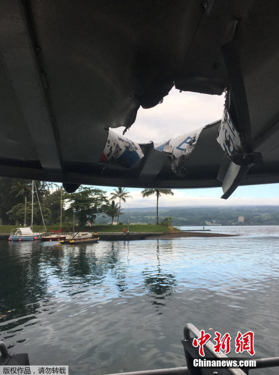 夏威夷火山熔岩击中观光船 船身被砸出大窟窿