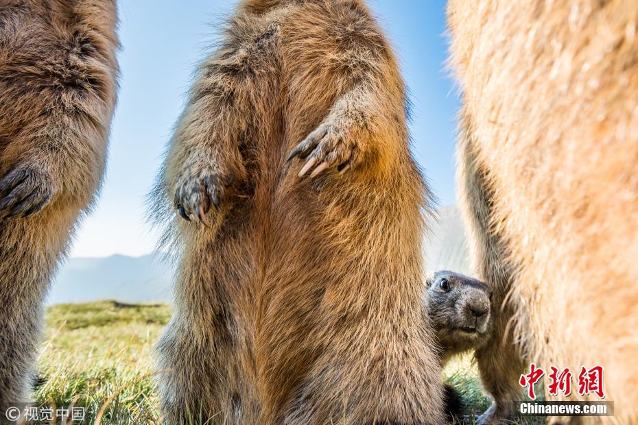 比起减负颜值重担的成年土拨鼠,小土拨鼠对于镜头的好奇和渴望显而易见,即便被挡住,也要从成年土拨鼠的身体间窥视。图片来源:视觉中国