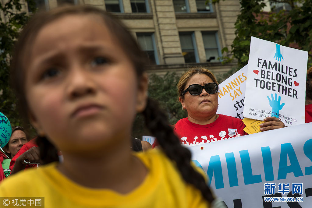 当地时间2018年7月18日,美国纽约,包括托儿所从业人员、父母及其子女在内的社会各界人士在美国移民和海关执法局(ICE)附近组织示威游行,抗议特朗普政府近期在美国南部边境实施针对非法移民家庭的强制拘留和家庭成员离散政策。 当天,共和党领导的众议院通过了支持ICE的决议,并谴责一些民主党人和进步积极分子要求废除ICE的呼声。(图片来源:视觉中国)