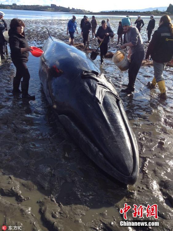 当地时间7月17日,智利奇洛埃群岛的海滩出现一头搁浅的须鲸,在智利海洋相关部门的救助下,这头须鲸最终成功回到大海。 图片来源:东方IC 版权作品 请勿转载