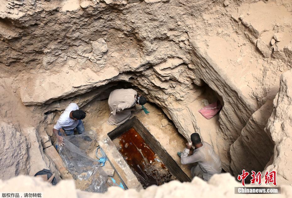 当地时间7月19日,埃及考古工作者在亚历山大港新发现的巨型黑色石棺现场工作,石棺里共发现了三具木乃伊。这具石棺长2.7米、宽1.5米、高1.8米,估重达到30吨。石棺被发现时上面有一层厚厚的泥浆,表明未被盗掘过。目前,关于这具石棺的具体信息还未公布,不过埃及官方有人认为,这个墓属于托勒密王朝的某个贵族或掌权者。