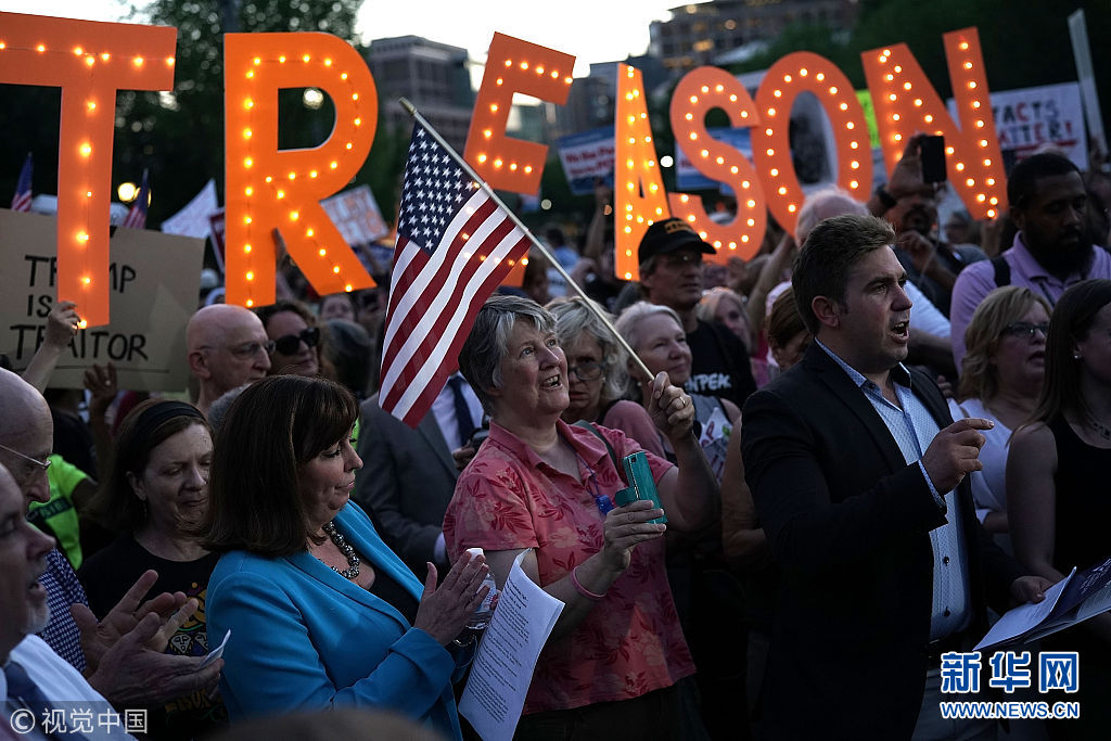 数百民众聚集白宫外参加守夜集会 讽刺特朗普变普京“傀儡”