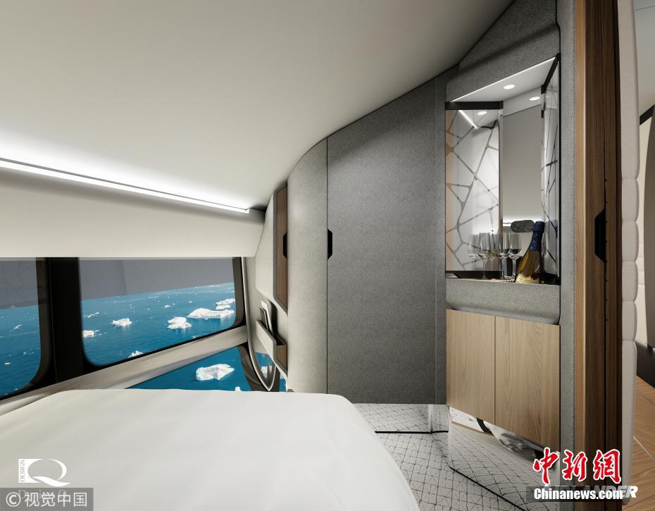 作为全球最大的飞行器,Airlander 10曾引起多方关注。在近日召开的范堡罗国际航空航天展览会上,它的制造者英国混合航空飞行器公司首次公开透露了该机舱内部的装饰设计。Airlander 10由英国设计公司Design Q设计,客舱长度为46米,要比大多数单通道飞机的客舱大很多。在长达3天的奢华旅行中,能够容纳19名乘客和船员。其内部设计包括含浴室的私人卧室、带落地窗的休息室、能够提供全方位的可视角度,此外还有供乘客享用饮品和美食的高空酒吧。Airlander 10由四台325马力的涡轮增压柴油发动机驱动,并由类似机翼装置提供40%的空气动力,氦气可以使其在空中保持飞行。此外,它可以携带重达10吨的有效载荷,载人情况下能在空中停留连续五天,不需要专门设计的跑道。 图片来源:视觉中国