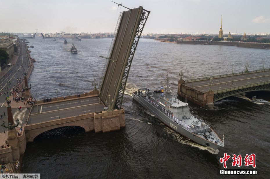 当地时间7月22日,俄罗斯圣彼得堡,俄罗斯海军为举行彩排活动,迎接海军日。俄罗斯海军日一般在7月的最后一个礼拜日举行。