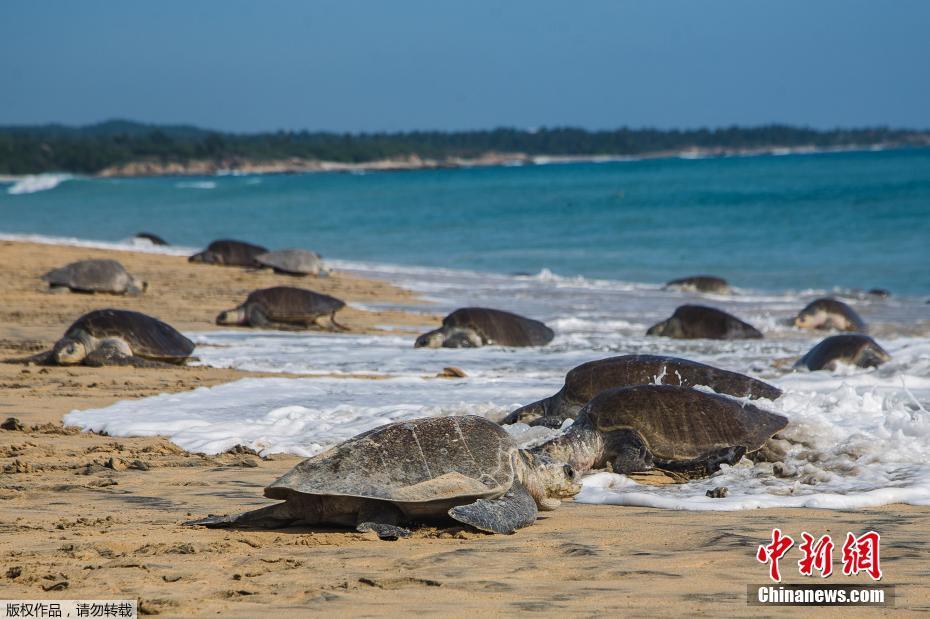 当地时间2018年7月20日,墨西哥米却肯州,成群丽龟来到海滩产卵景象壮观。