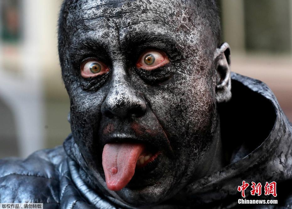 吓一跳! 艺术家变身“活雕塑”真假难辨