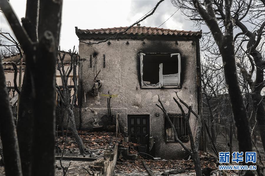 这是7月24日在希腊首都雅典附近的马蒂小镇拍摄的焚毁的房屋。