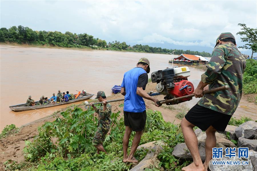 7月25日,在老挝阿速坡,军人在码头搬运救援设备。 据老挝当地媒体25日报道,老挝南部阿速坡省桑片-桑南内水电站23日晚发生的溃坝事故,已导致19人死亡、多人失踪。新华社发 刘艾伦 摄
