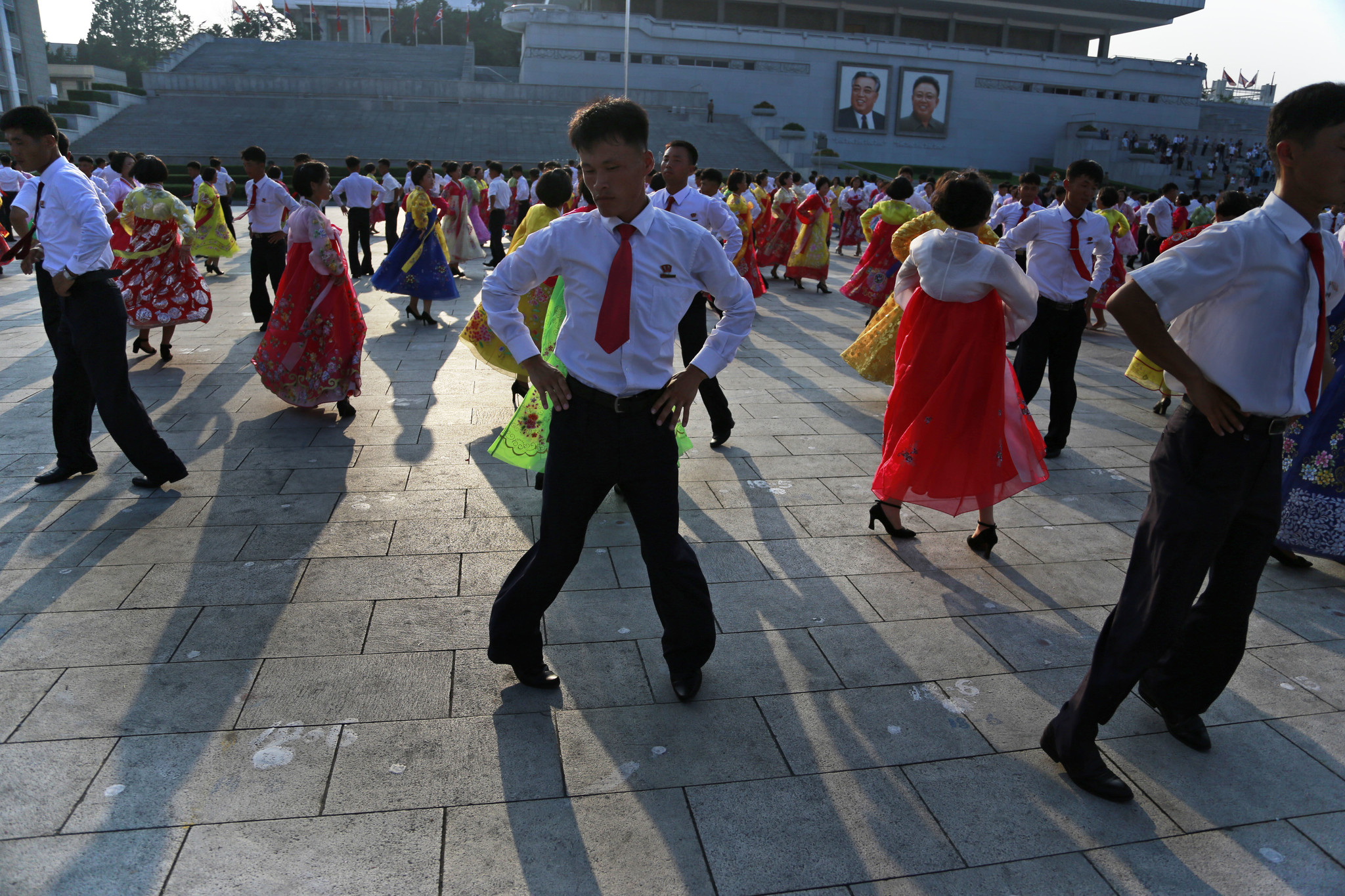 朝鲜纪念祖国解放战争胜利65周年 民众在广场上载歌载舞