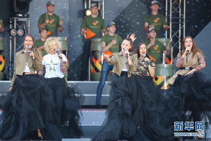 7月28日,在俄罗斯首都莫斯科郊外的阿拉比诺,演员在“国际军事比赛-2018”开幕式上表演。