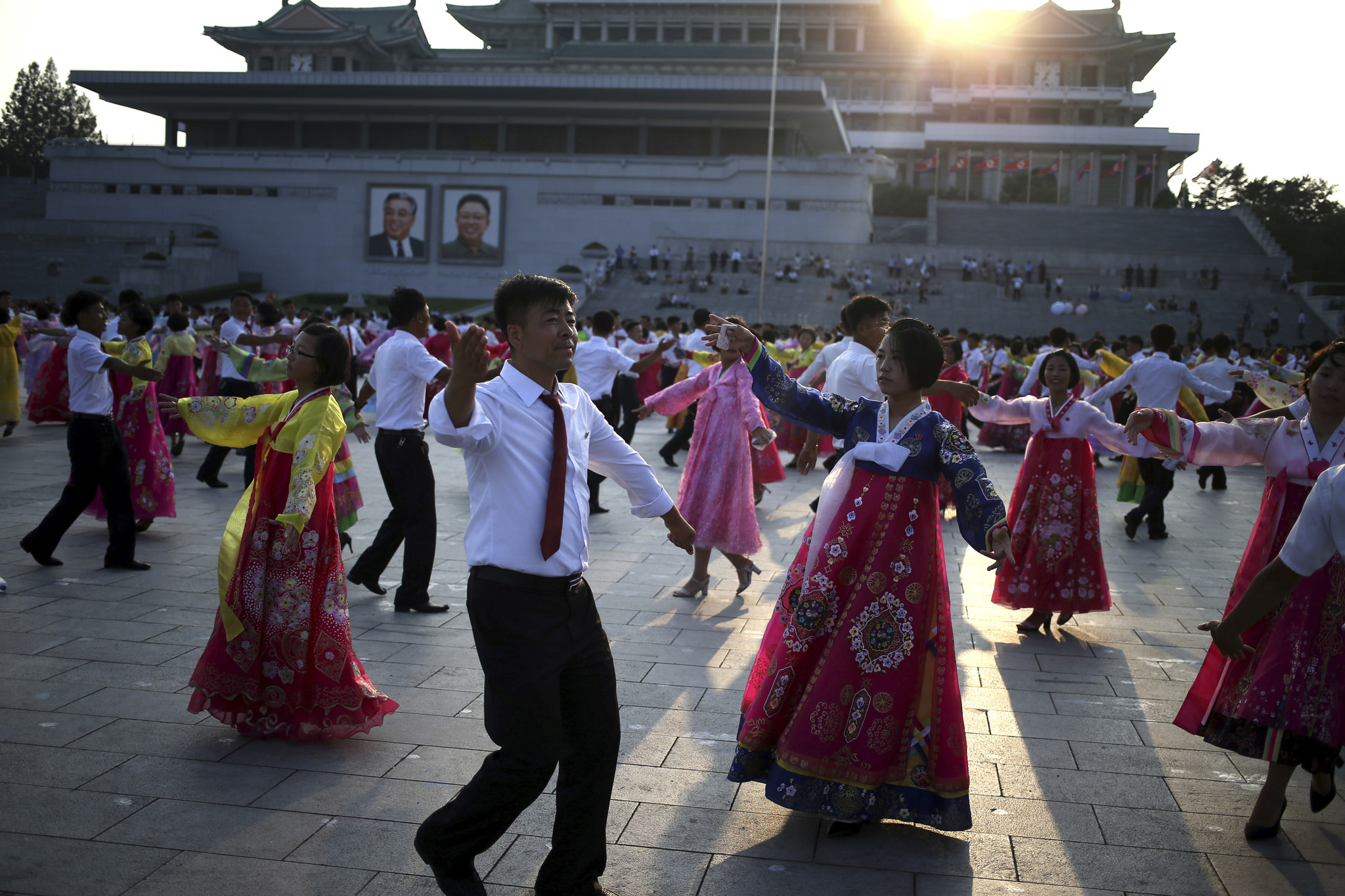 朝鲜纪念祖国解放战争胜利65周年 民众在广场上载歌载舞