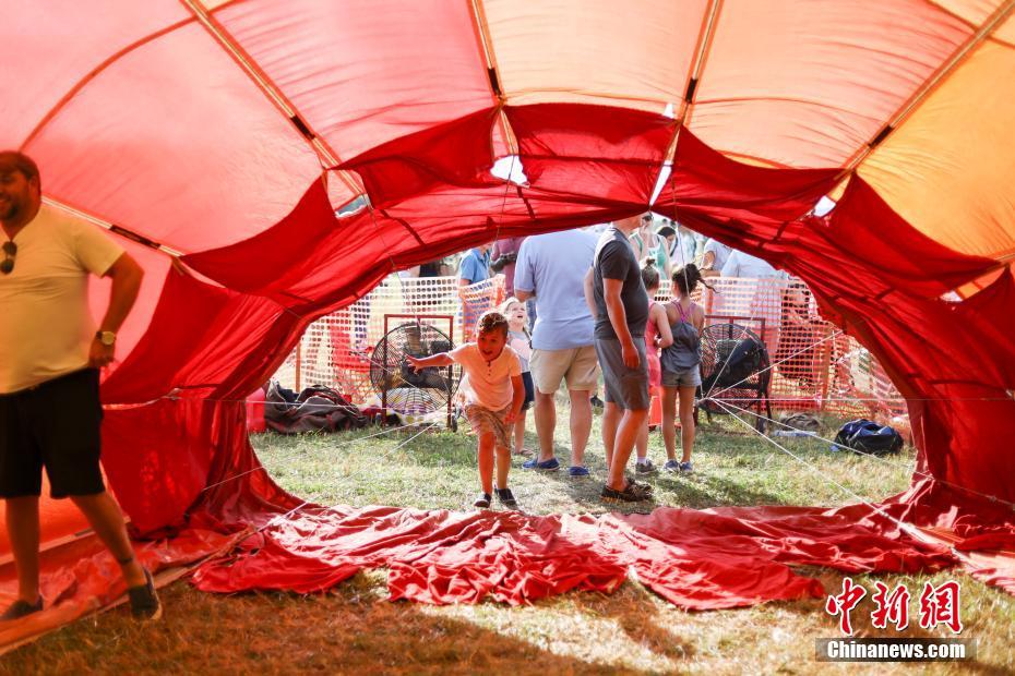 当地时间7月29日,美国新泽西州雷丁顿举行的新泽西热气球节上,孩童在热气球内玩耍。当日傍晚,为期三天的第36届新泽西热气球节举行最后一次飞行活动,约100只热气球升空飞行。众多美国民众在雷丁顿的草地和音乐中享受户外时光。中新社记者 廖攀 摄
