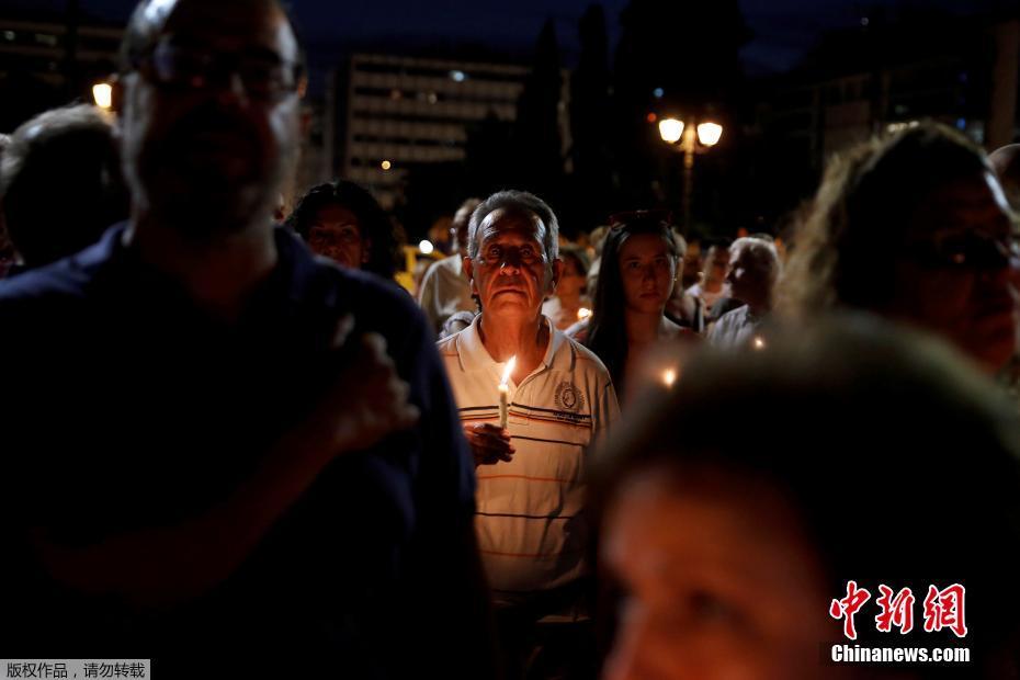 希腊森火已致91人遇难 民众议会前悼念遇难者