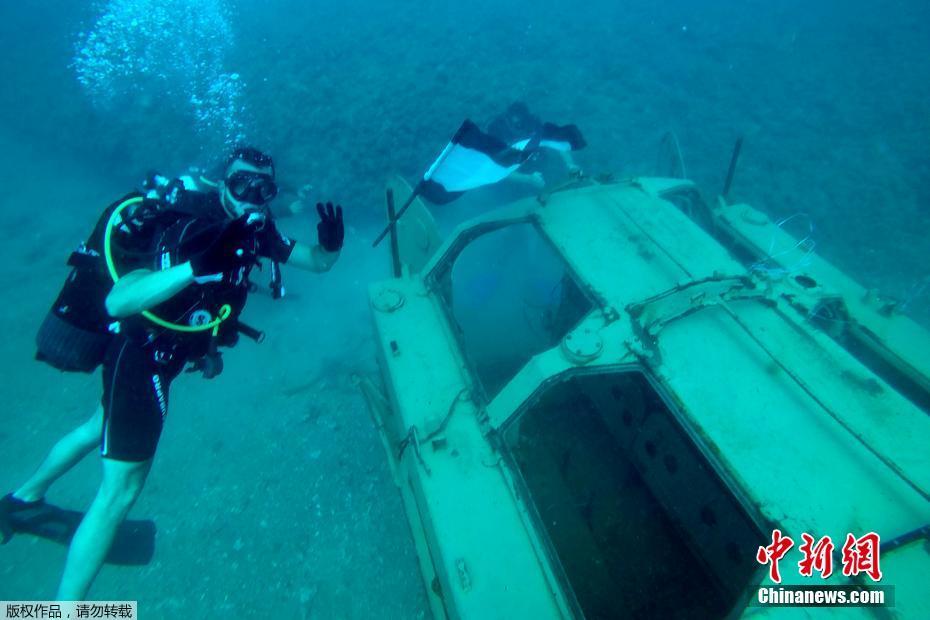 当地时间7月29日,黎巴嫩西顿,潜水员们在被沉到海底的坦克附近作业。黎巴嫩军队捐赠了六辆旧坦克和另外四辆军用车辆,将它们沉到海底作为人造礁石,形成有利于珊瑚礁生长和繁殖的人造栖息地。人造礁石的建设旨在恢复西顿海岸附近的海洋生态,并吸引游客和潜水爱好者。