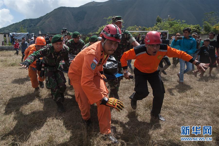 7月31日,在印度尼西亚龙目岛,救援人员运送一名遇难人员的遗体。 印度尼西亚抗灾署31日确认,已成功撤离543名被困在印尼西努沙登加拉省龙目岛林贾尼火山的登山人员。龙目岛29日发生6.4级地震,岛上的林贾尼火山因地震引起山体滑坡,阻断多条登山道路,数百名各国登山人员被困。 新华社发(维里·萨诺弗里摄)
