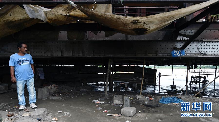 7月31日,在印度首都新德里,一名男子站在亚穆纳河边。新华社记者张迺杰摄