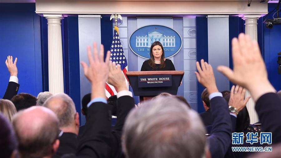 8月2日,在美国首都华盛顿,白宫发言人桑德斯出席记者会。 新华社记者刘杰摄