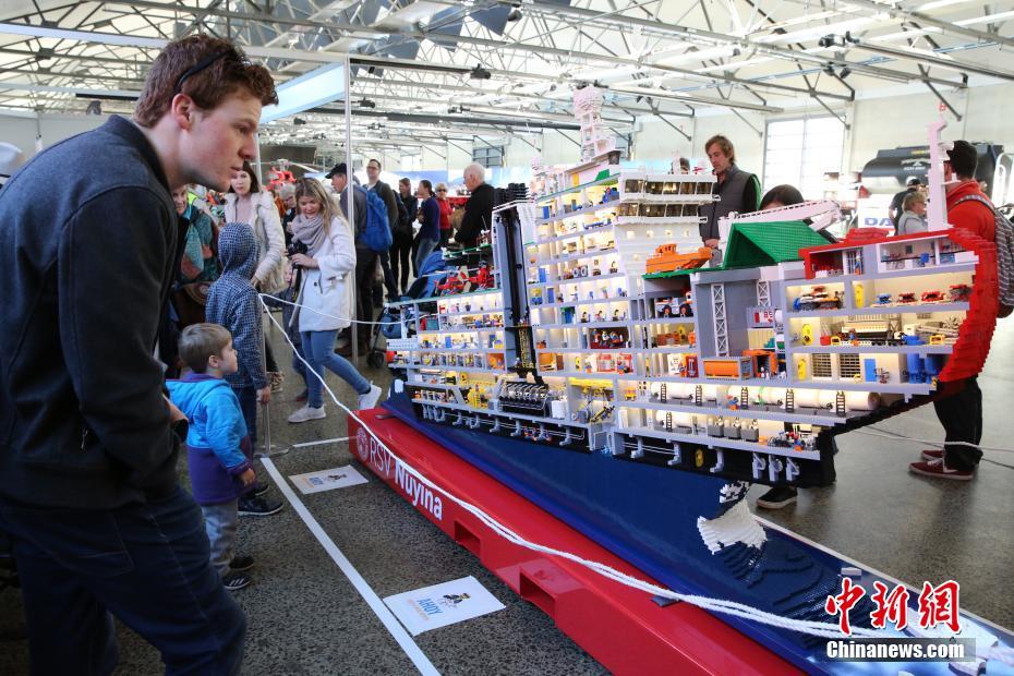8月4日,为期4天的澳大利亚南极节迎来公众开放日,展示南极科学考察各种装备。图为11万块乐高玩具拼装成的澳大利亚新建的“Nuyina"号破冰船模型。 中新社记者 陶社兰 摄