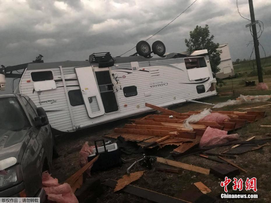 加拿大中南部地区遭龙卷风 房车被掀翻