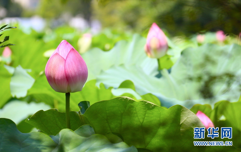 日本东京都上野公园不忍池的荷花近日进入观赏季,图为8月4日拍摄的不忍池荷花。(新华网记者 彭纯摄)