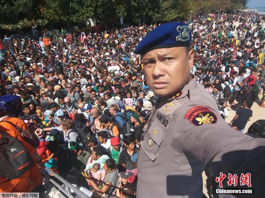 当地时间8月5日晚,印尼西努沙登加拉省龙目岛东北部发生里氏7.0级强震,震中位于该岛北部陆地,震源深度15公里。图为大批人群等待乘船离开岛屿。