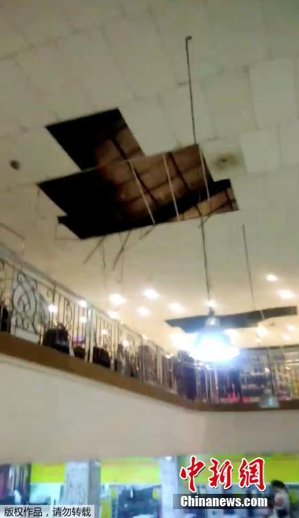 地震发生时,与龙目岛隔海相望的著名旅游胜地巴厘岛也有震感。图为巴厘岛上的一个购物中心屋顶的天花板被震落。